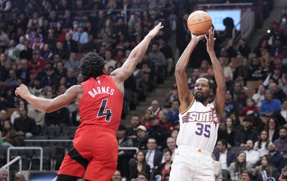 太阳队首发:凯文-杜兰特、尤素福-努尔基奇、约什-奥科吉、埃里克-戈登、德文-布克